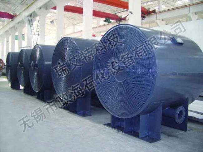 5、不易檢修,尤其是內部板出現問題時極難修理,有些廠把設備兩端焊縫全部車掉,重新將板展平補焊后再卷制,這樣做消耗的工時太大,因選用螺旋板式換熱器防腐是十分重要的。